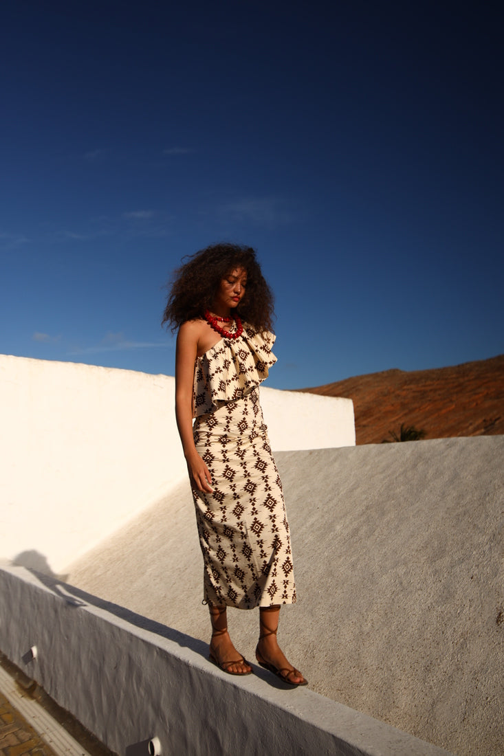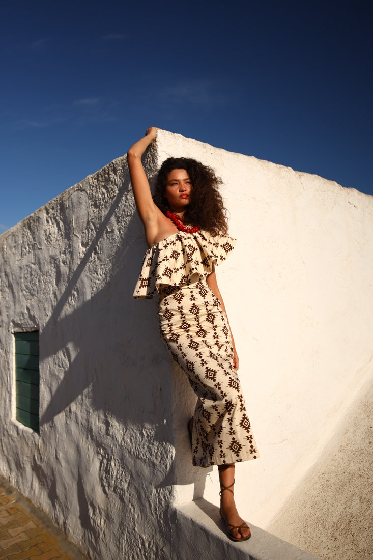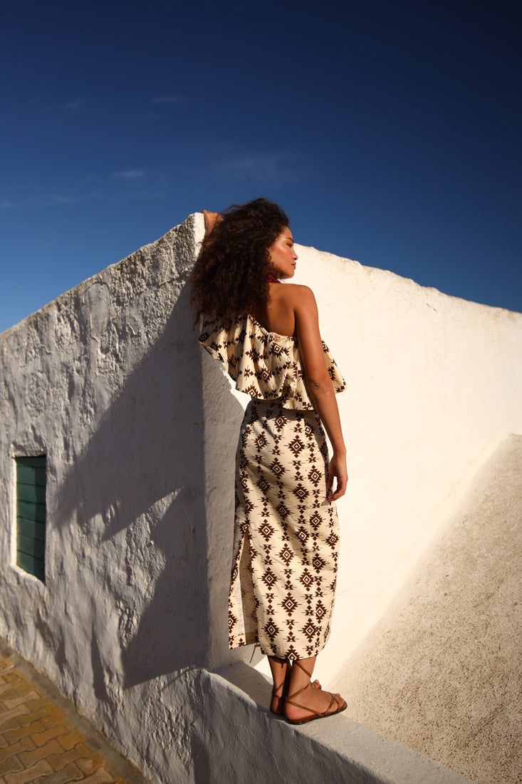 Nuestro popular conjunto Jade es el look más deseado para destacar en cualquier evento. Su diseño asimétrico, tejido con volumen y estampado original hacen que cada detalle te haga sentir única. ¡Una apuesta segura para brillar día y noche!